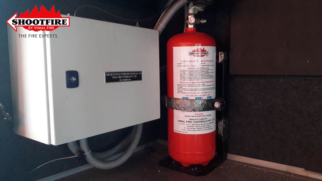 The Extinguishing system is designed to be a primary device, which deploys UL Listed DCP (ABC 90%) onto the fire within the first few seconds of it being detected. The aim is to contain and suppress / extinguish a fire before it develops into a fully evolved fire.