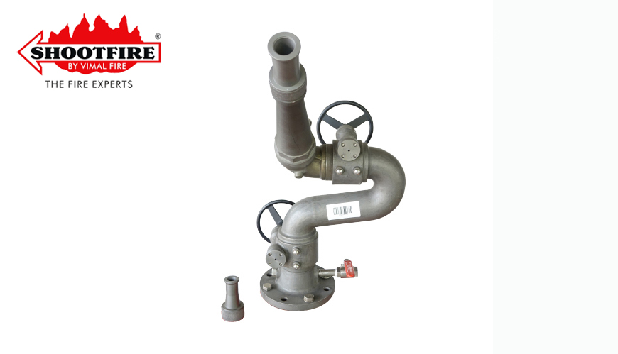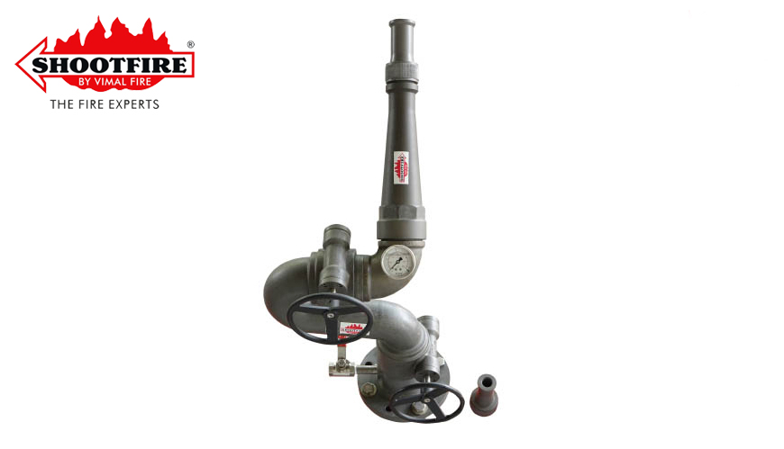 The manually operated SHOOTFIRE brand Water Monitor made of Aluminium Alloy is capable of discharging 250 to 750 USGPM of water at 100 psi (7 bar) inlet pressure over a range of 40 to 60 meters with an elevation of 30° - 35°. It is officially the World’s First UL-Listed Aluminium Alloy based Water Monitor.