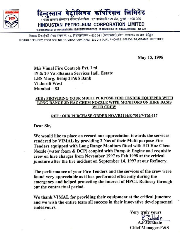 Vimal Fire Controls, Pioneer in providing Innovative & World Class Fire Detection, Suppression and Management, has been instrumental in successfully responding and containing numerous industrial fire events since 1983.