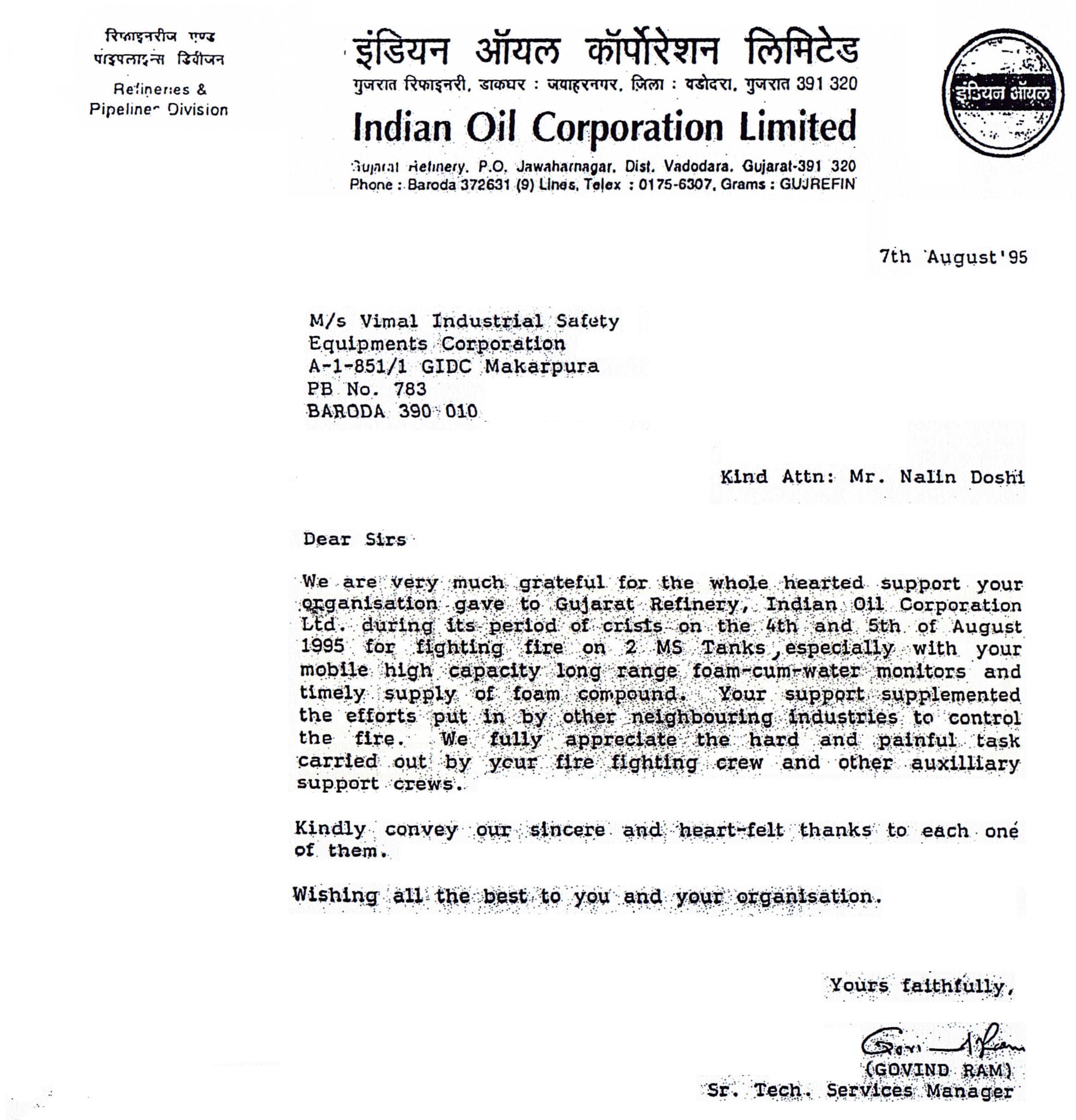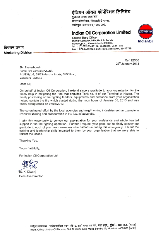 The Fire occurred in Tank No. 4 at the Terminal, Vimal Fire Controls’ ERC professional Team had provided its Technical Expertise.